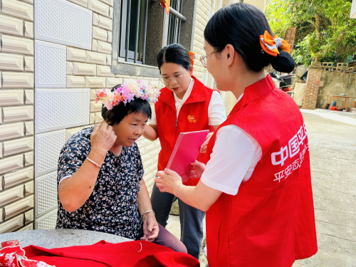 “阿嬷,七夕戴簪花,福气满满!这是我们照着泉州蟳埔女簪花样式做的,您戴上真水(闽南语:漂亮)!”8月26日,平安产险泉州中心支公司志愿者带着与小朋友共同手作的泉州特色簪花,走进泉港区后龙镇独居老人家中,以承载地方文化记忆的非遗手艺,为老人们的七夕增添一抹亮色。