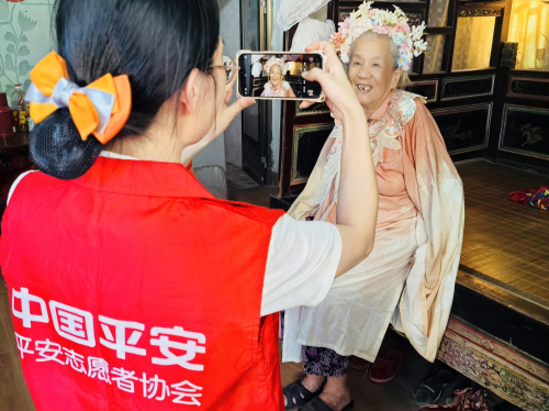 “阿嬷,你戴的花,配这衣服更好看,来,咱们一会再给您拍张照。”这天,不仅带来了精致的手作簪花,平安产险的志愿者们还带上了多套精选汉服,为老人们送上别样七夕祝福。