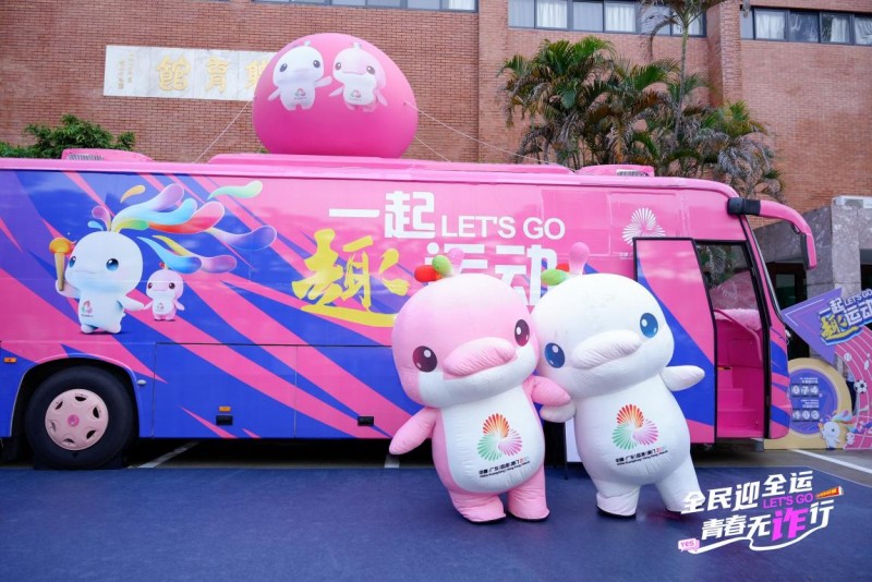 启动仪式上,“一起‘趣’运动”全运主题巴士惊艳亮相,瞬间成为全场焦点。这辆主题巴士集文化展览、运动体验、趣味打卡于一体,车上的流动全运博物馆和全运文创周边快闪店等主题区域,为参与者提供丰富的互动体验。车身及内饰巧妙融合了十五运会和残特奥会的特色元素与时尚设计,仿佛一辆穿梭于校园的“移动地标”,成为创新全运文化传播模式的生动载体。