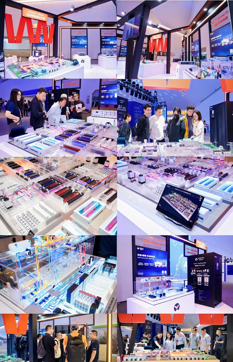 在大会展示区,维谛技术(Vertiv)全面展示了Vertiv™360AI全链智算解决方案,以及电能管理链、热管理链的创新成果,充分展现了在AI基础设施领域的领先实力。