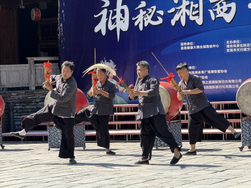 抗战时期修建、堪称“公路奇观”的矮寨盘山公路,如今已成为全国爱国主义教育示范基地,吸引着众多青年学子前来感悟先辈的艰辛与坚韧。每天上午10点、下午3点,铿锵有力的苗鼓声准时在寨中响起,30分钟的表演鼓点激昂、舞姿奔放,淋漓尽致地展现苗族儿女的精气神,总引得游客随节拍击掌喝彩。在苗绣、扎染、蜡染等非遗展示区,针线穿梭、染料晕染,古老的美学在指尖绽放,成为年轻游客镜头下的焦点和社交平台上的热门话题。