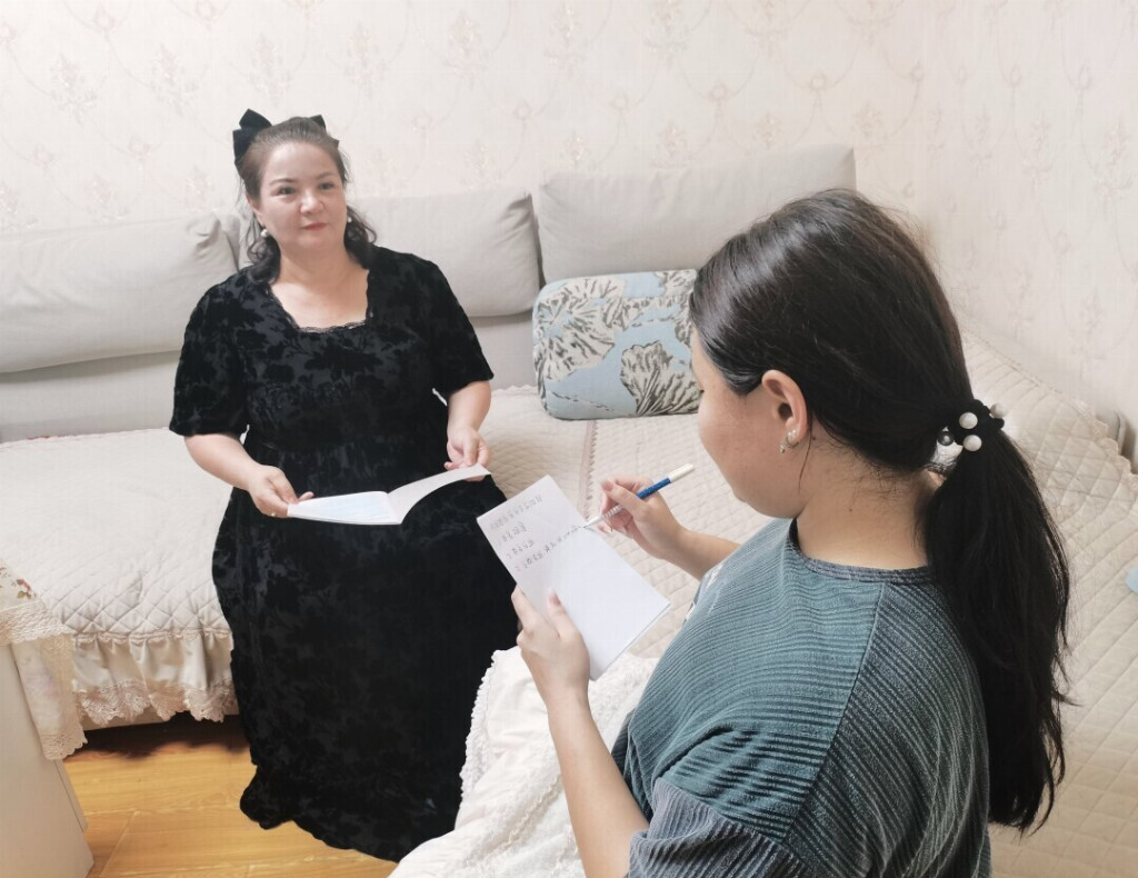 图为团队成员前往乌鲁木齐市地质党员家中采访 阿茹娜提供
