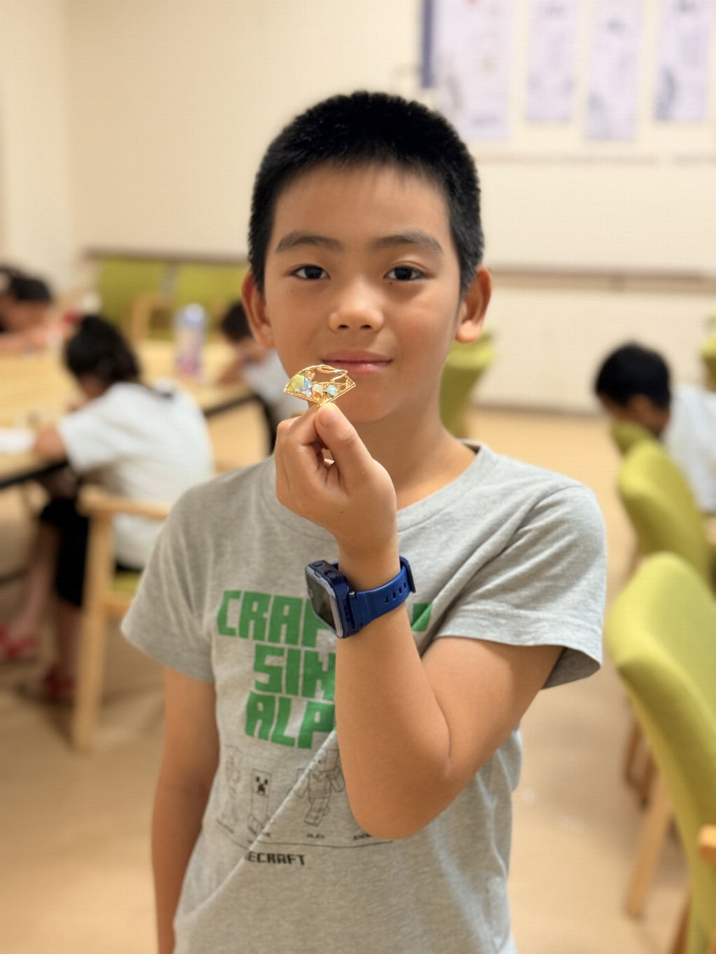 活动创新融入互动传播环节。体验结束后,孩子们踊跃担任“小小螺钿宣传员”,用稚嫩而真诚的语言分享感悟:“螺钿像黑夜里的星星贝,闪闪发光”,“每一片小贝壳都藏着古人的巧心思!”他们手捧自己完成的螺钿作品,脸上洋溢着自豪。这20余件作品,不仅是夏日实践的清凉纪念,更是连接古今的文化信物。