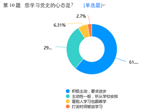 问卷结果令人振奋:绝大多数青年对党史学习抱有积极态度,并认同其对于塑造正确历史观和价值观的重要意义。这一发现既坚定了我们持续推进党史学习教育的信心,也为后续实践活动指明了深入方向。