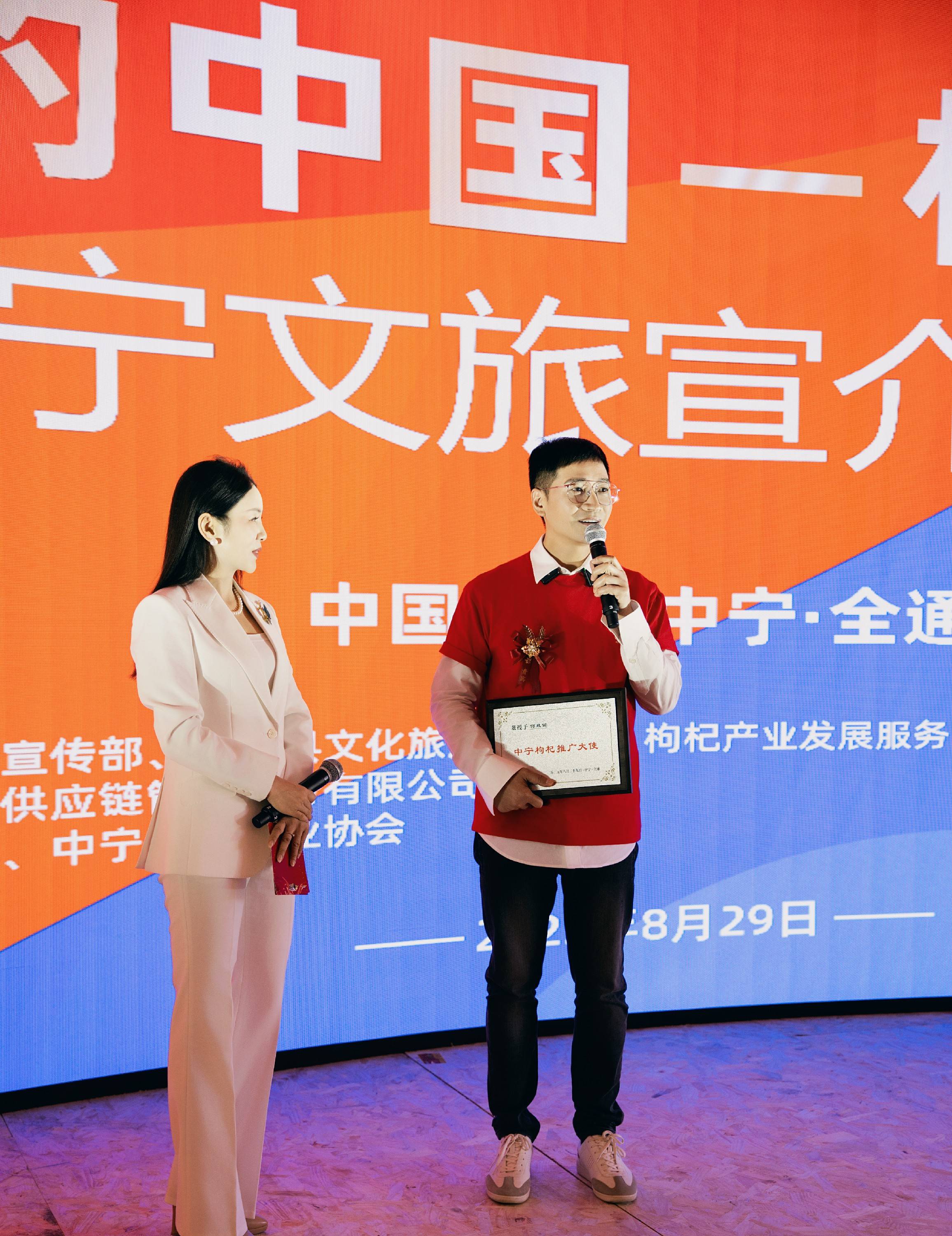 何晟铭因在多部热门代表性影视作品中塑造的经典角色而被大众熟知,近期更是因“白月光”热梗活跃在大众视野。此次他以非遗文化发起人的身份来到中宁,被中宁文旅局授予“中宁枸杞推广大使”的荣誉,何晟铭将“中华文化传承人”的身份牢记在心,此次非遗探寻之路走入中宁,何晟铭肩负着传播枸杞文化、助力枸杞产业振兴的重要使命,并亲力践行。为了更好地助力非遗产品走向市场,何晟铭特邀为中宁的非遗构杞产品代言。成为继实力派演员陈道明后,第二位宁夏枸杞类产品的代言人。