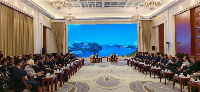 蒙古国第一副总理兼经济发展部部长尼·乌其尔勒发表书面致辞,蒙古国经济发展部国务秘书伊·巴特呼代为宣读。中国商务部副部长鄢东、韩国产业通商资源部通商交涉室长卢建基、中国国际贸易促进委员会副会长李兴乾、巴斯夫集团全球副总裁晏思先后致辞。朝鲜对外经济相尹正浩、俄罗斯经济发展部副部长弗·伊利乔夫发来贺信。