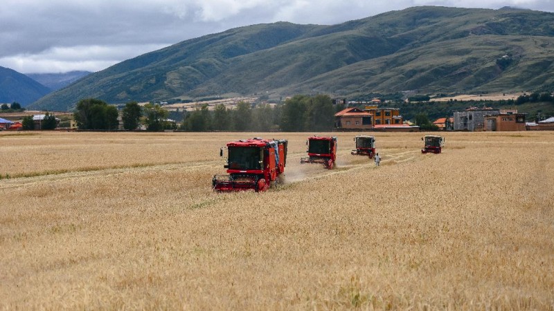 8月29日,四川甘孜州甘孜县拖坝乡拖坝四村的500亩青稞基地里,收割机轰鸣作响,金黄的青稞穗被整齐收割、脱粒。今年,甘孜县12万亩青稞迎来丰收,预计总产量达27805吨,较去年增长4.9%。目前,全县秋收进度已完成5%,200余台收割机正昼夜作业,预计9月中旬全部收割完毕。