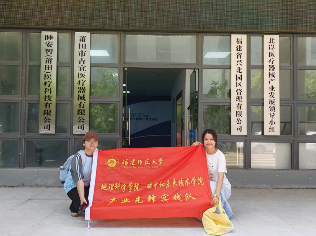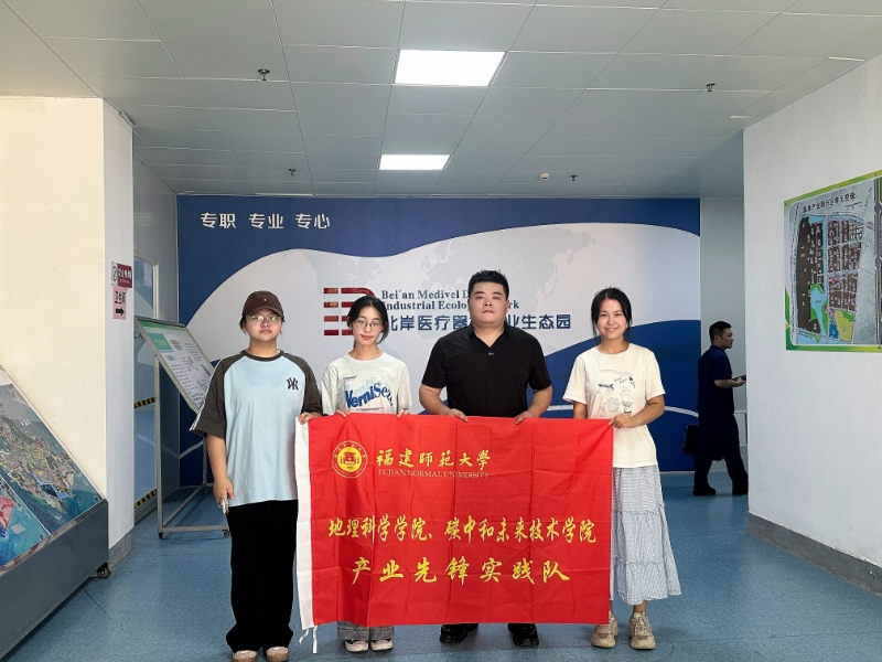 在深入实施“健康中国2030”规划纲要、大力推进生物医药与高端医疗器械产业创新发展的战略背景下,为探究地方健康产业转型升级的实践路径,福建师范大学地理科学学院、碳中和未来技术学院“产业先锋”实践队于7月18日前往莆田北岸经济开发区,对北岸医疗器械产业生态园及区内重点企业太阳树医药有限公司开展了深入的实地调研。实践队通过系统性地走访园区建设、参观企业生产线、与相关负责人进行座谈交流等方式,由此明晰产业发展逻辑,为助力探索产业升级路径贡献青春力量。