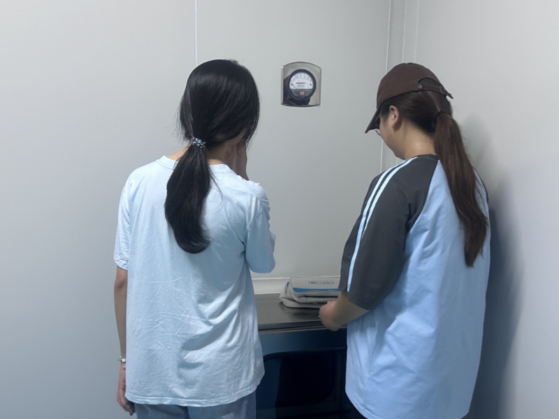 最后,实践队步入规划中的医疗标准化生产车间,其设计的高度无菌环境与已部署的智能化设备令人印象深刻。车间采用了模块化设计,将不同生产环节严格划分在独立的小型无菌单元内。虽然尚未正式投产,但队员们了解到,未来这些独立单元将通过智能系统实现高效互联与协同作业。小单元间的物理隔离最大限度降低交叉污染风险,智能系统则实时协调单元间的生产节奏与物料流转,确保无缝衔接,此外这种模块化布局本身还赋予了生产线应对市场变化的快速响应能力。