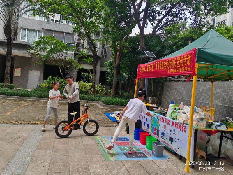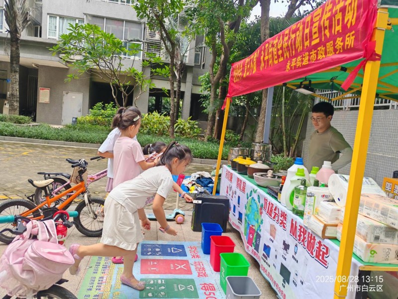 活动现场,永平街市政所设立了多个摊位,提供旧衣回收服务和垃圾分类互动游戏。居民们可以将闲置的旧衣物带到现场进行回收,既环保又能换取积分奖励。同时,垃圾分类互动游戏吸引了众多小朋友和家长的参与,通过游戏的方式让大家在轻松愉快的氛围中学习垃圾分类知识。