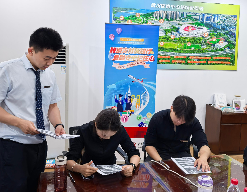 考虑到武汉体育中心常举办国际赛事,境外观赛者较多,支行特别设置“境外人士支付服务咨询点”,发放多语言版《跨境支付指南》,介绍境外银行卡境内使用、移动支付APP绑定等便利措施;现场解答跨境转账限额、外汇兑换流程等问题,结合服贸会、进博会等展会经验,讲解跨境金融服务要点,助力境外人士便捷消费。