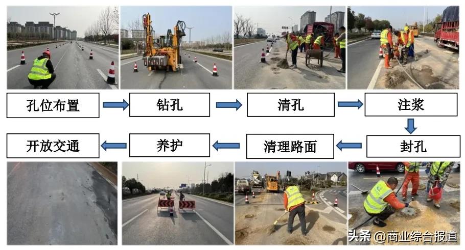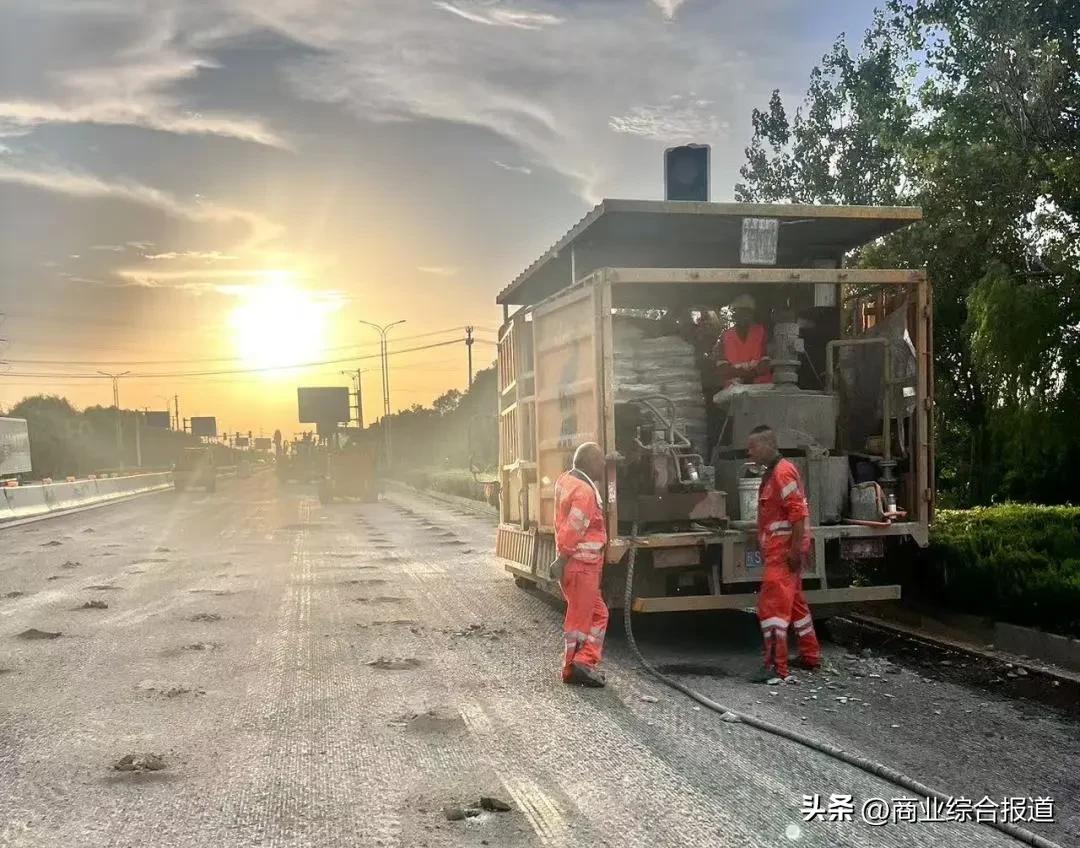 本次大中修项目的核心技术之一是地聚物注浆技术。这是一种环保、高效的地基加固方法,通过注入特殊材料填充路基空隙,提升道路承载力和耐久性。然而,该工艺对施工环境和技术操作要求极高,尤其在高温条件下,材料凝固速度加快,注浆压力和时机的把控尤为关键。