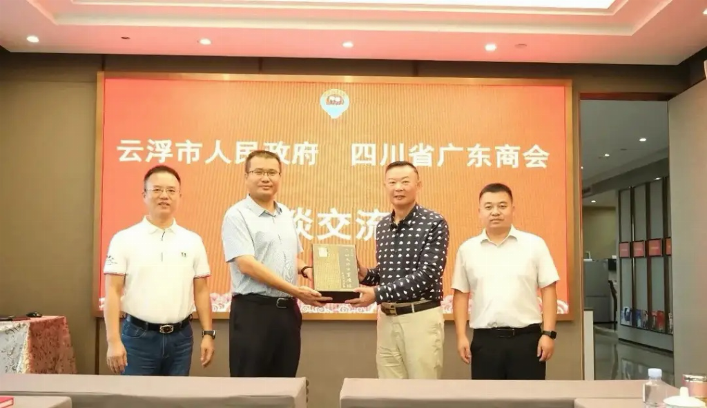 为推动产业资源对接,助力川粤经济协同发展,2025年8月28日下午,云浮市政府党组成员、副秘书长,佛山市-云浮市对口帮扶协作指挥部指挥长,佛山(云浮)产业转移工业园党工委书记、管委会主任杨洪委,佛山市-云浮市对口帮扶协作指挥部副指挥长、佛山(云浮)产业转移工业园党工委委员陈演频,云浮市投资促进局投资管理科科长纪美君,佛山市-云浮市对口帮扶协作指挥部投资促进组副组长,佛山(云浮)产业转移工业园管委会招商局副局长李志坤,广东佛山(云浮)产业转移工业园投资开发有限公司副总经理董贵虎一行到访四川省广东商会。四川省广东商会党支部书记叶文彬、轮值会长林勇生、副监事长张礼平,副秘书长钟惠热情接待并座谈交流。