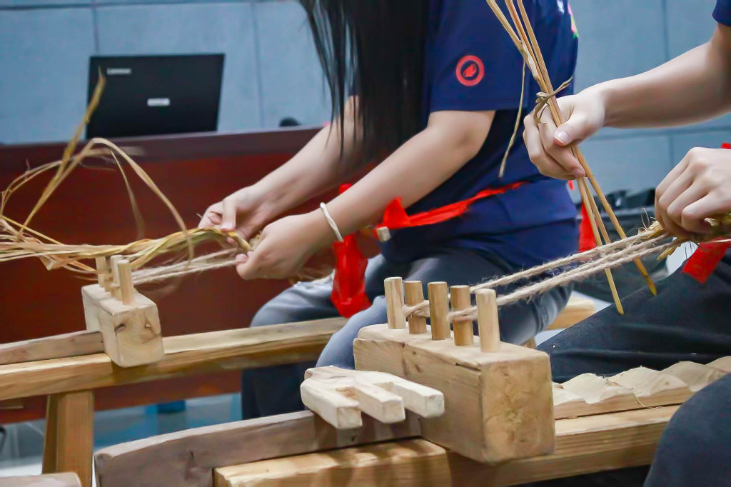 (图为队员们编制红军草鞋 宣童睿/提供)