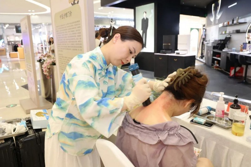 护理团队的中医特色服务更是排起了长队,护士们手持铜砭,在市民耳廓的胃、脾、内分泌等反射区轻柔刮拭,通络排毒;同时开展的穴位贴敷、艾灸调理等项目,通过刺激足三里、三阴交等穴位,助力健脾祛湿、促进代谢。