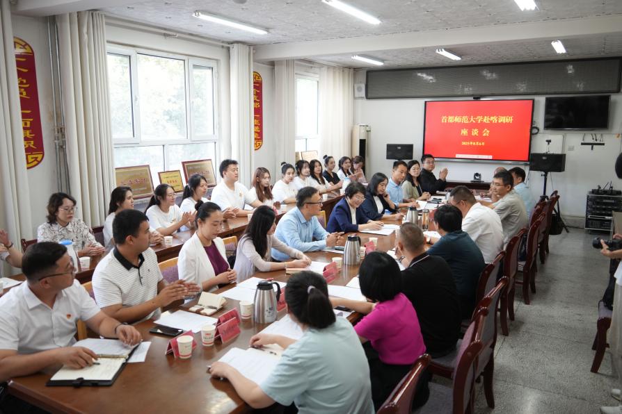 实践期间,首都师范大学还与喀什地区教育局、乌鲁木齐市教育局、乌鲁木齐市经开区及高新区(新市区)教育局座谈交流。双方与会人员就进一步加强对接与合作、拓宽师范生赴喀什就业渠道,教学科研帮扶、西部计划志愿者遴选、三下乡团队建设等方面进行了深入交流与探讨。