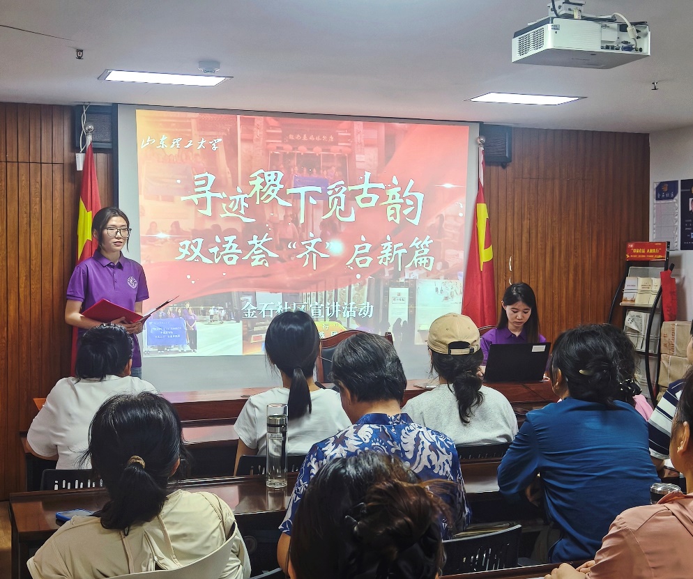 为传承千年齐风文脉,推动齐文化在社区活态传播,8月16日上午,山东理工大学外国语学院“齐风之行”社会实践团走进张店区金石社区,开展以“传承齐风文脉,弘扬传统文化”为主题的宣讲活动。此次活动旨在通过面对面交流,让社区居民深入了解齐文化的历史渊源、精神内涵与时代价值,进一步增强文化自信。