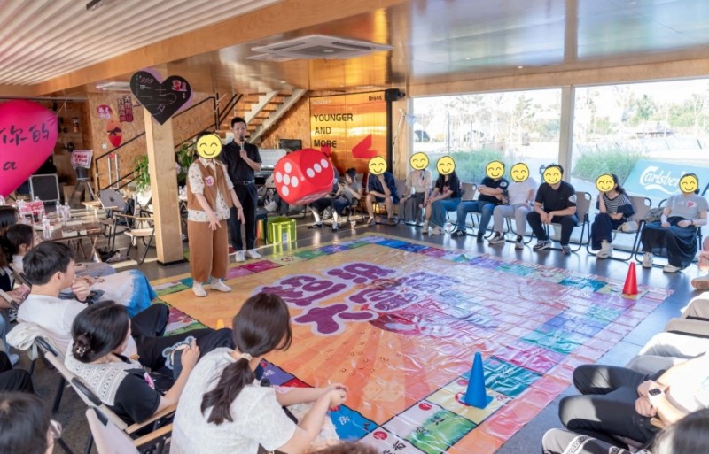 “请抽取命运卡——挑选一位对手挑战金鸡独立!”“恭喜触发挑战任务:请听以下歌曲,并唱出下一句!”幸运大富翁游戏将全场推向高潮。青年们组队掷骰子闯关,任务卡上创意十足的挑战引得欢呼不断。