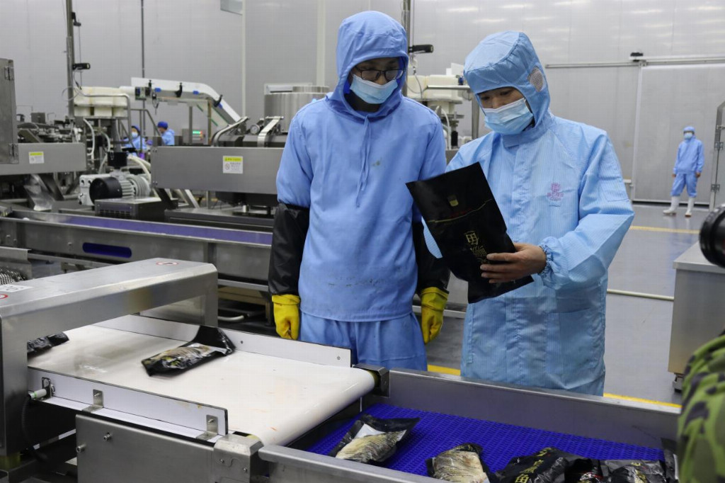 当日上午,实践团抵达黄山皖新徽三食品供应链有限公司。在公司人力行政总管朱笑霞的引导下,团队成员详细了解了公司的创立发展历程以及徽州臭鳜鱼的传统制作技艺与现代工艺革新,并实地参观了从原料处理到成品腌制的全流程机械化生产线。