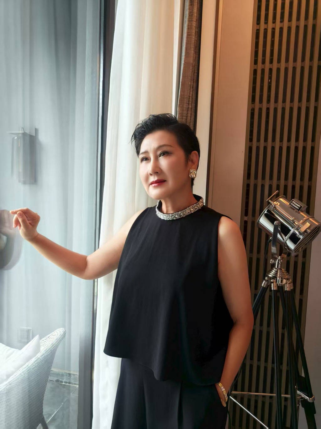 日前,凯丽身着一身黑色无袖套装亮相长春电影节闭幕式现场,优雅端庄又气场十足,领口处一圈钻饰点缀更显精致与高级。晚会现场,凯丽先是与青年演员刘浩存一同进行主题讲述《回眸新中国22大明星》,深情回溯长春电影制片厂历史,致敬老一辈艺术家的荧幕贡献。一向擅长朗诵的凯丽以沉稳的叙述传递历史厚重感,与刘浩存的默契合作更形成了“前辈传承新生代”的视觉感和主题呼应,引发极大关注。随后,凯丽还与本届金鹿奖评委、编剧张冀一同为“最佳编剧奖”获得者进行开奖及颁奖。