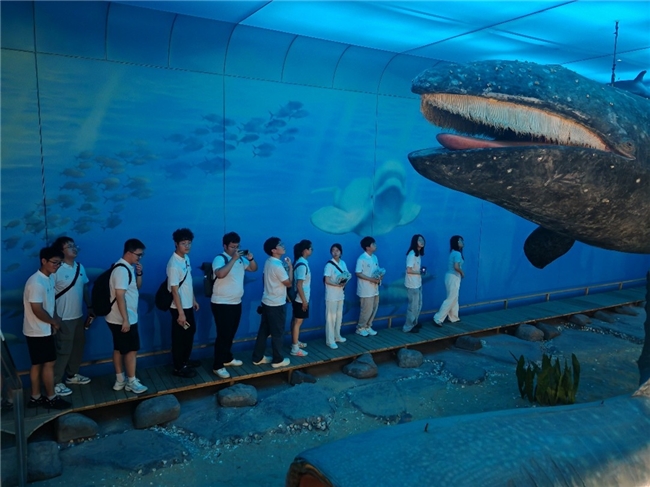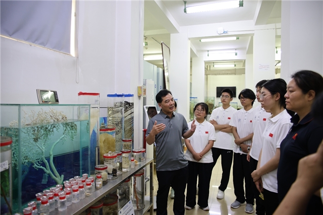 2025 年 7 月 21 日 青岛・中国科学院海洋研究所南海路园区海洋标本馆 队员观察深海及浅海生物标本,直观了解海洋生态系统的复杂性,构建海洋生物多样性认知。