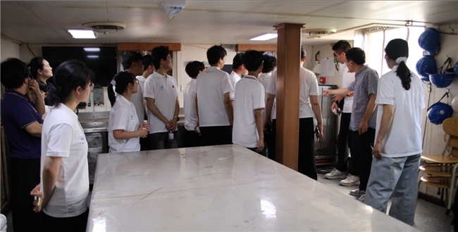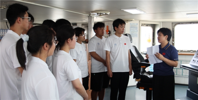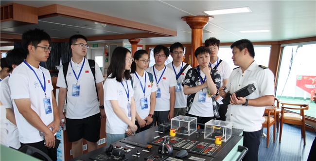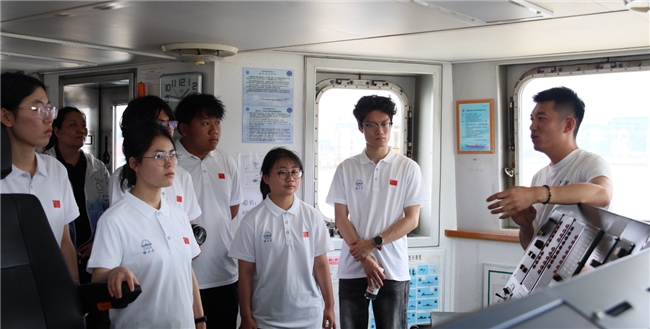 2025 年 7 月 23 日 厦门・“向阳红 3 号” 科考船驾驶室 队员参观驾驶室内精密仪器,直观感受我国海洋科研硬实力,理解船舶作为 “海洋强国利器” 的国家使命。 王治强供图
