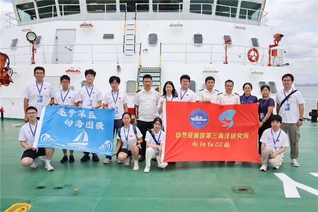 2025 年 7 月 23 日 厦门・“向阳红 3 号” 科考船 实践队队员们在向阳红03号甲板上合影 王治强供图