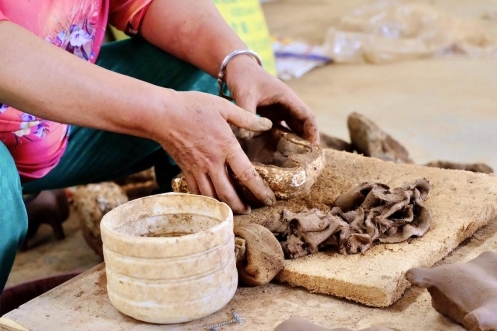 图为正在制作的凤翔泥塑