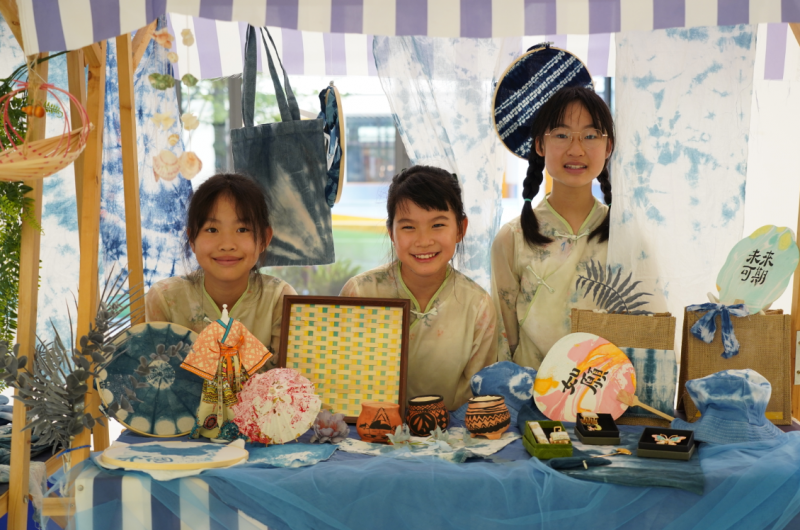 各位领导参观“天工开物”非遗工坊的同时,学校四年级的学生们正在上由千承文化非遗老师主讲的非遗课程,学生们深刻的了解到非遗扎染的历史发展以及欣赏了各种扎染纹样,孩子们脸上灿烂的笑容和专注的神情,让每一位来宾都感受到了他们发自内心的喜爱。见此情景,大家无不倍感欣慰——非遗的种子已在这片校园沃土中生根发芽。