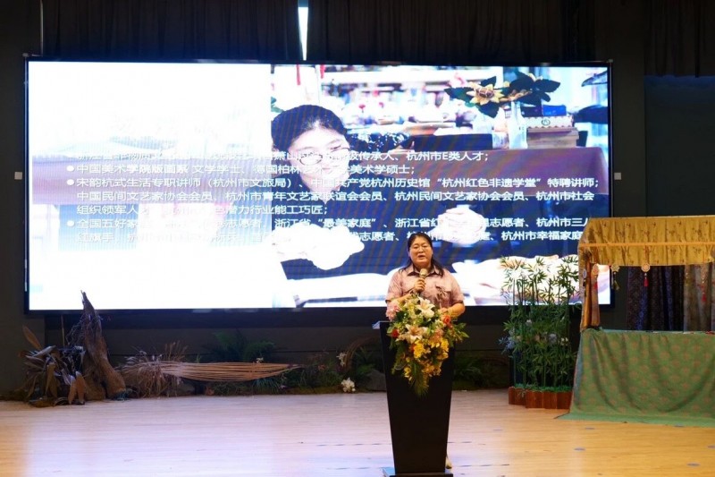 中国博物馆协会专业会员理事、浙江省博物馆学会研学专委会秘书长郑玮,杭州市基础教育研究室书记、主任 费红亮,杭州市上城区教育局党委委员、副局长 王世美,杭州市上城区文广旅体局四级调研员 黎娇,杭州手工艺活态馆馆长 周珈伊,浙师大学国际文化与社会发展学院非遗保护本科专业主任 陈映捷,省级非遗代表性项目萧山过江布市级非遗传承人 杨洁,杭州千承非物质文化传播有限公司总经理 王谦,钱江外国语实验学校书记、校长赵骎以及各位领导、部分师生共同参与。