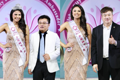 第二名布莉安娜Brianna Maria、2025第20届全球城市小姐世界杯邀请赛副主席 张啓城先生、第二名布莉安娜Brianna Maria、紫青国际商会会长 郭金耀先生