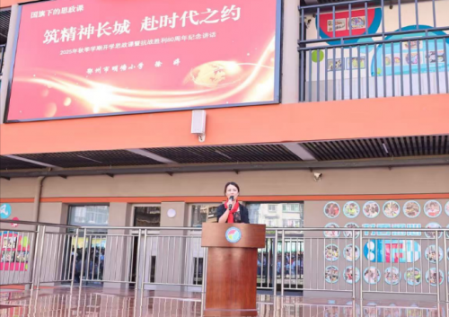 鄂州市明塘小学党支部书记、校长徐婷在开学第一堂思政课上寄语同学们要以史为鉴,珍惜当下,立志成才。80年前,先辈们用“血肉之躯”筑成了“万里长城”,挡住了敌人的铁蹄;今天,我们要用“知识”做砖,用“创新”做瓦,用“行动”做魂,共同筑成新的“精神长城”,以自己实际行动践行“强国复兴有我”的铮铮誓言。
