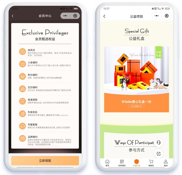 品牌在搭建线上电商经营场域时,对比了传统的中心化电商平台,以私域为核心优势的微信生态与品牌想要打造基于强社交属性的人宠服务空间的理念更为契合,同时私域流量的投放也更加精准,对于成长初期的品牌来说,能够有效减少公域投流带来的巨大沉没成本。