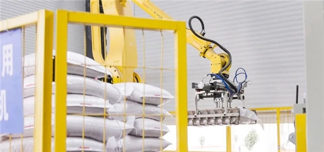 离他办公室不到1000米的智能生产车间里,机械臂随着流水线节奏精准挥舞,自动化码包机将产品整齐码放成垛,机械运转的低鸣中,科技的活力正与书页里的时光对话。