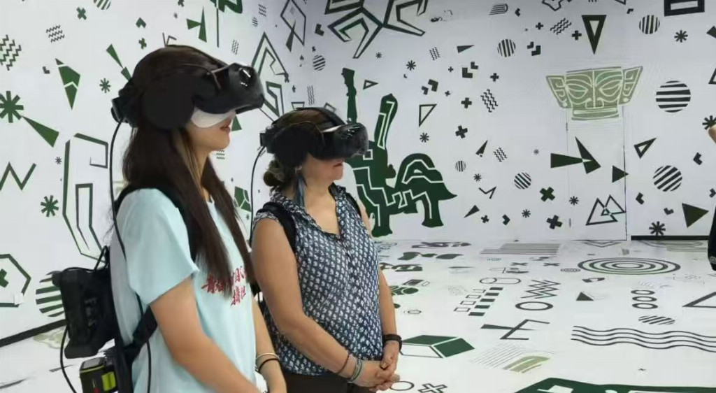 在负一楼的 VR 展区,通过虚拟现实技术,希腊专家沉浸式体验了三星堆青铜器的铸造工艺及祭祀场景,仿佛穿越时空,亲身参与到古蜀文明的神秘仪式之中,对古蜀文明的神秘性产生了浓厚兴趣,不时发出惊叹之声。