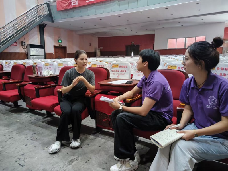 2025年8月23日至25日,实践队一行6人赴渭南市临渭区开展实地调研,在渭南市秦腔剧团负责人李康及相关部门的配合下,通过“深度访谈+现场观摩+问卷调研”的三维方式,全方位捕捉秦腔数字化传播的实践细节。