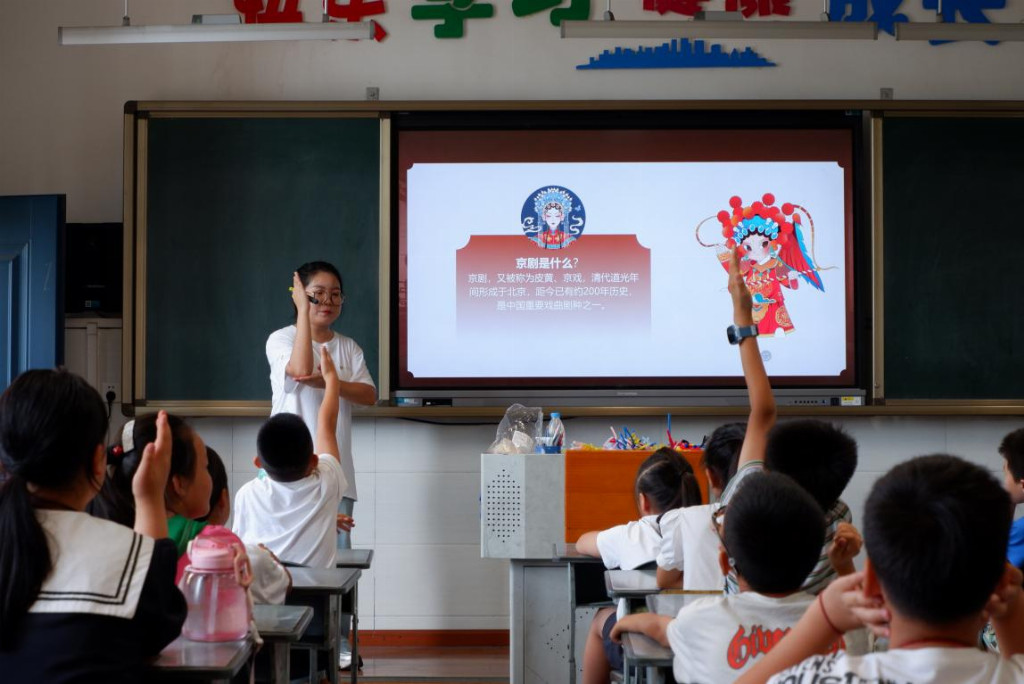 展示环节变身“非遗时装周”。头戴自制盔头的孩子们逐一亮相,伴着铿锵锣鼓点完成人生首次京剧谢幕。校长牟大勇感慨:“高校学子的创新教学,让学校的孩子们更深刻地理解了‘文化自信’的重量。”