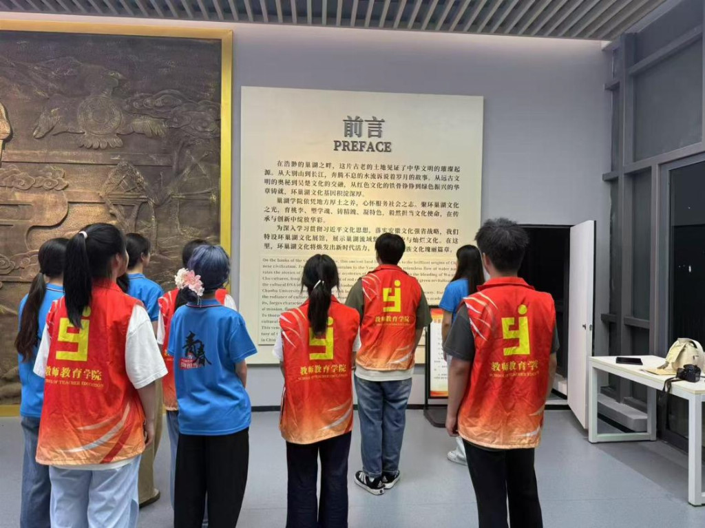 下午,实践团来到了巢湖学院环巢湖文化馆。这张合影不仅是对一天调研活动的总结,更是对实践团使命的宣言——他们将致力于在乡村普及美育,让更多人感受到巢湖文化的魅力。