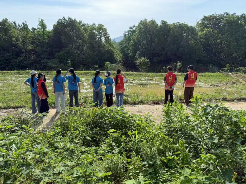 (图为实践团成员们在三瓜公社的田野间进行实地调研。图摄:张雨超)