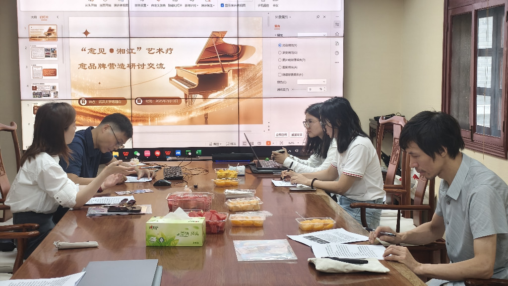 7月13日,岳麓文化馆馆长谭婷专程赴武汉大学,与“心弦计划”团队及指导老师围绕“愈见・湘江”品牌建设开展专题研讨。谭婷指出,湘江新区市民对“文化体验+心理疏导”存在双重需求,岳麓文化馆希望联合湘江新区公共文化服务高质量发展联盟与高校力量,以“音乐+”多元艺术形式探索“政产学研用”协同路径,最终建成全国首个艺术疗愈城市样本。针对这一需求,“心弦计划”团队队长朱颜玉、陈冬梅系统分享了实践案例、神经科学疗愈技术及“1+N”艺术疗愈空间设计思路,为品牌建设提供可落地参考,双方同步敲定活动设计、志愿者培育及长效合作机制等核心内容。