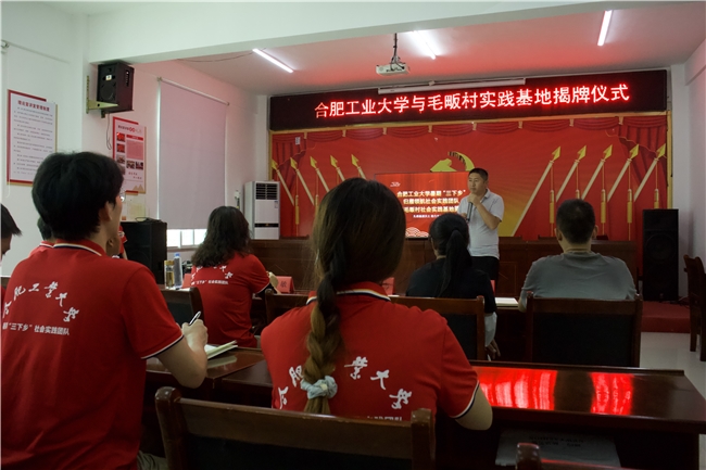 毛畈村书记姚有志对合肥工业大学组织开展社会实践工作表示衷心感谢。他指出,实践基地的成立不仅为毛畈村搭建了与高校连结的桥梁,更为毛畈村的未来发展注入了新的生机与活力。他希望双方以此次合作为契机,进一步加强交流互动,推动校地合作向更深层次、更广领域发展,共同为乡村振兴注入青春力量,随后,所有参会人员集体参加合影留念。