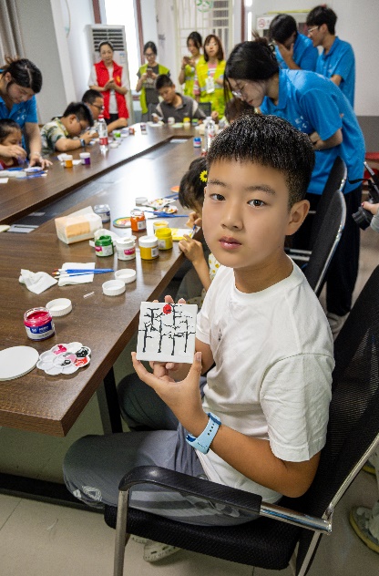 7月5日上午,团队首场活动"童趣彩陶绘"在社区活动室开展。志愿者们引导6-12岁儿童在陶土杯垫上绘制卡通图案。孩子们用稚嫩的双手和五彩的颜料,在志愿者一对一的指导下,创作出20件充满童趣的彩陶作品。
