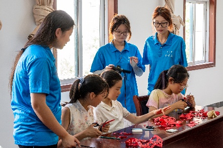 志愿者指导青少年学习剪纸技巧