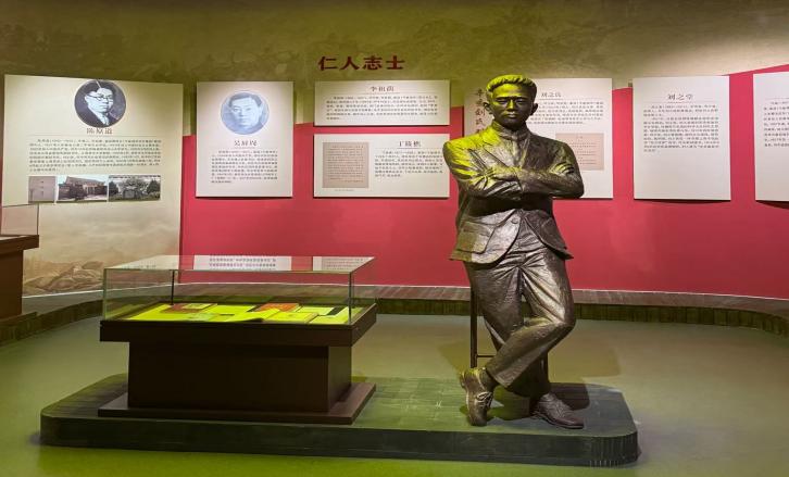 “巢湖历史文化”展厅中。成员观察了西周铜剑、战国铜矛等兵器文物,其锻造工艺映射了古代军事文明的演变。在瓷器区中,清代瓷粉彩花鸟纹罐以细腻画工与釉色惊艳四座,而唐代铜花鸟纹镜则彰显了装饰美学的时代特征。最注目的是西汉带盖朱雀玉卮,这件玉雕珍品以朱雀图腾象征祥瑞,流畅线条与透雕的技法体现了汉代工艺的较高水平。深化了对中华器物美学的深刻理解。最后走进“巢湖革命历程”展厅。团队成员怀着崇敬之心,瞻仰了李慰农烈士的事迹展。1925年,李慰农在青岛领导工人运动时壮烈牺牲,其家书与遗物生动诠释了“为信仰献身”。 李克农“红色特工”的传奇人生和诸位英雄的英勇事迹跃然眼前,为他们的智慧和无私奉献而感动。 还有冯玉祥将军的抗战历程和爱国爱民的精神也成为了团队思政教育的教材。 这些英雄的故事,串联起巢湖地区的革命脉络,也彰显了伟大的红色基因。