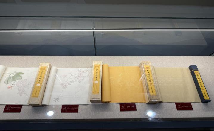 走进“巢湖非物质文化遗产”展厅。团队成员仔细观察了传统纸笺的手工造纸工具、染色技法及历史文献,这些展品见证了巢湖作为古代造纸术传播的辉煌。如唐代起源的粉蜡笺为宫廷圣旨用纸,它融合了吸水性的“粉”与防水性“蜡”,和明代发展的“造金银印花笺”,现代复兴失传百年的“手绘描金粉蜡笺”,2008年入选国家级非遗。此工艺融合了书画、雕刻、印染等技艺,使纸张兼具实用性和艺术性,也代表了中国传统手工制纸的高水平。 特别在巢湖民歌区中,巢湖民歌伴随巢湖地域文明演进,为巢湖劳动人民集体创作,它体裁丰富多样,有号子、山表,秧歌、小调,风俗歌曲等,通过活泼生动的表现方式,反映人民群众的劳动和生活、爱好和追求,表现人民群众的思想情感。2006年5月巢湖民歌被列入首批国家级非物质文化遗产中。通过了解也理解了这一国家级非遗项目的艺术特色与社会功能。