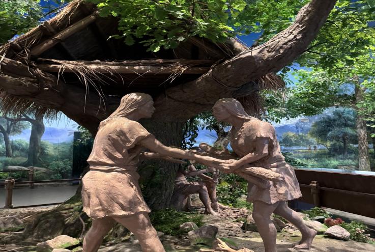 在“远古时期的巢湖”展厅中,团队成员深入了解了巢湖流域的文明史。展区内陈列了远古化石,生动再现了银山智人在此繁衍生息的场所,巢湖地区地质资源十分丰富,是驰名中外的三叠系下三叠统“金钉子”候选剖面和巢湖鱼龙动物群所在地,是研究全球三叠纪生物复苏,及海生爬行动物起源与早期演化最重要的地区之一。巢湖是旧石器时代晚期有巢氏的发祥地,有巢氏因“构木为巢”发明巢居,开创了巢居文明新时代,对中华文明的发展演进产生了积极深远的影响。是古人类的诞生地和古文明的发祥地之一,巢湖先民在这块土地上,创造了许多灿烂辉煌的历史文化。