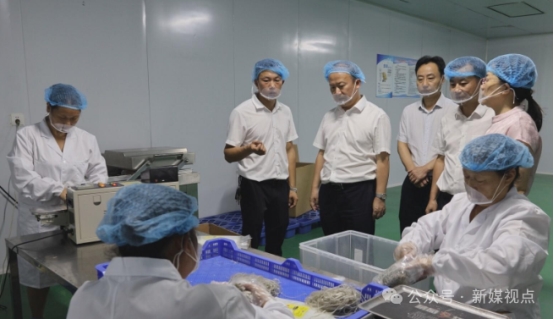 在衡阳县启宏城乡产业运营有限公司,孙浩察看企业的生产流程,详细询问原材料供应、产品销售渠道等情况。衡阳县启宏城乡产业运营有限公司通过引进机械化生产加工设备,提升智能化水平,实现了关市红薯粉规模化、标准化生产,日产量达到700多斤。