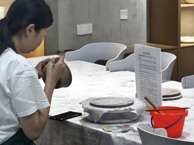 成员们还参观了陶瓷博物馆,一件件精美的瓷器宛如历史的使者,诉说着过去的故事,让他们对瓷器的发展历程有了更为清晰的认识。他们通过社交媒体,将景德镇的瓷器文化推向更广泛的受众。成员们感慨万千,他们深刻体会到传统工艺的魅力和传承的不易。团队队长胥博文表示:“看到那些精美的瓷器,我仿佛穿越时空,感受到了古代工匠的智慧和心血。”