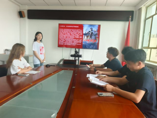 实践团成员李思思在社区党员活动中心宣讲抗战历史,展示英雄事迹,号召青年汲取力量,担民族复兴重任,引发同龄人共鸣。