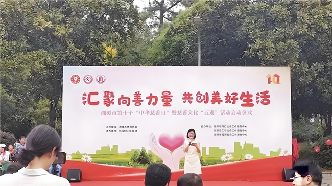 9月7日,湘潭市第十个“中华慈善日”暨慈善文化“五进”活动在岳塘区湘电公园启幕。